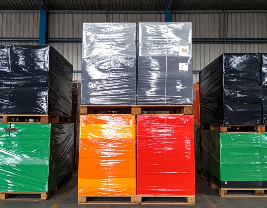 • Playo para envolver de colores: Ideal para identificar, clasificar o proteger la visibilidad del contenido de los pallets. El negro es común para disuadir robos.